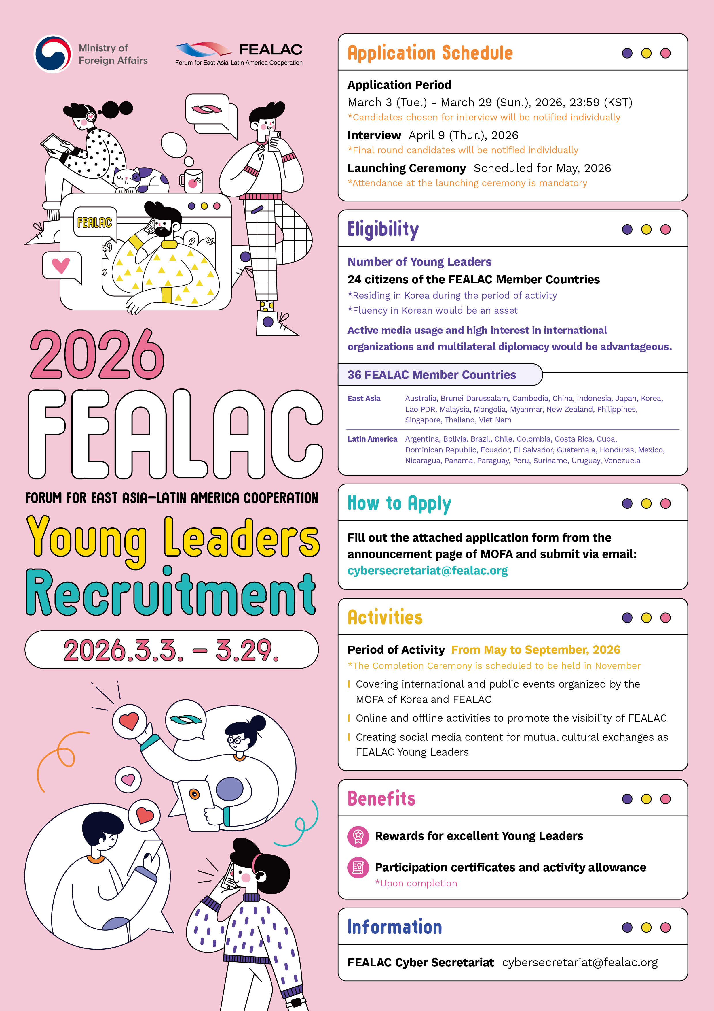 2026년도 FEALAC 국민대표단(FEALAC Young Leaders) 모집합니다.