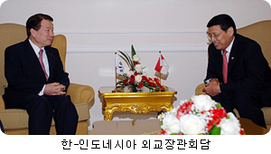 남아태 지역 3개국(인도네시아, 호주 및 뉴질랜드)을 순방 중인 유명환 외교통상부 장관은 1월 21일 하산 위라유다(Hassan Wirajuda) 인도네시아 외교장관과 회담을 갖고, 민주주의와 시장경제라는 공동의 가치를 바탕으로 양국간 ‘전략적 동반자 관계’를 더욱 발전시켜 나가기로 하였습니다.